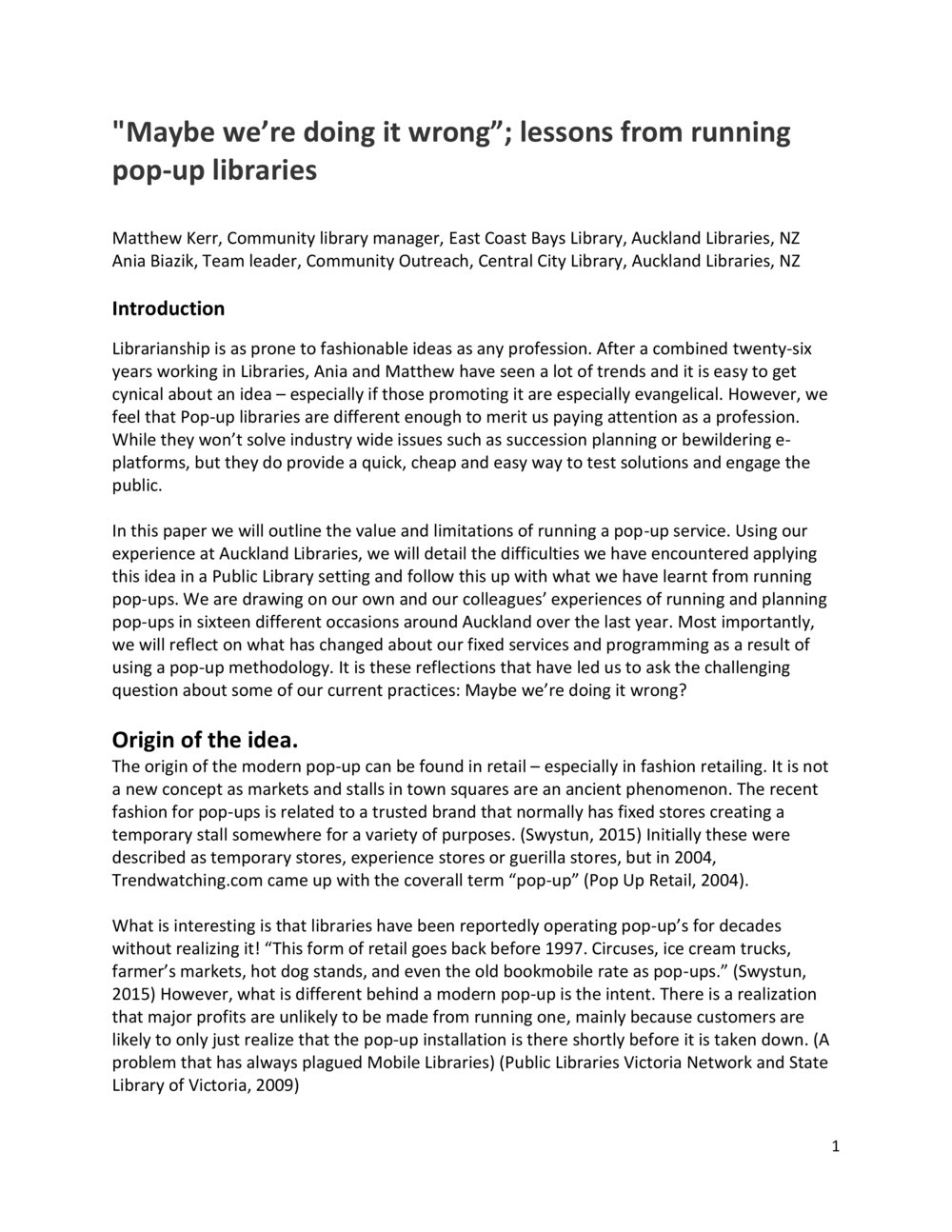 Lianza (23rd May 2017). "Maybe we're doing it wrong"; lessons from running pop-up libraries. Kerr, M; Bianzik, A.. In Website Lianza. Retrieved 19th Mar 2026 23:47, from https://lianza.recollect.co.nz/nodes/view/1970