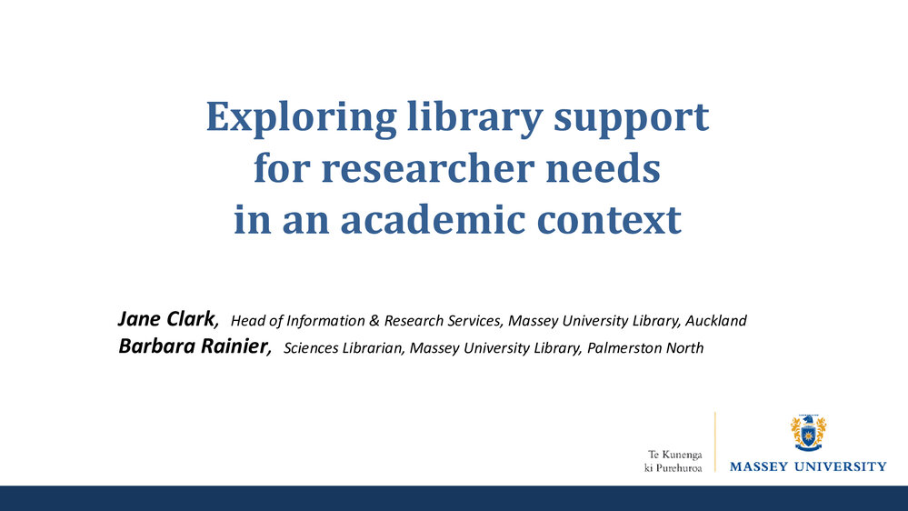 Lianza (23rd Sep 2024). Exploring library support for researcher needs in an academic context, Jane Clark & Barbara Rainier. In Website Lianza. Retrieved 4th Apr 2026 06:44, from https://lianza.recollect.co.nz/nodes/view/2018