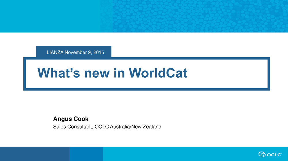 Lianza (17th Jan 2025). What’s new in WorldCat, Angus Cook. In Website Lianza. Retrieved 19th Mar 2026 18:56, from https://lianza.recollect.co.nz/nodes/view/2026