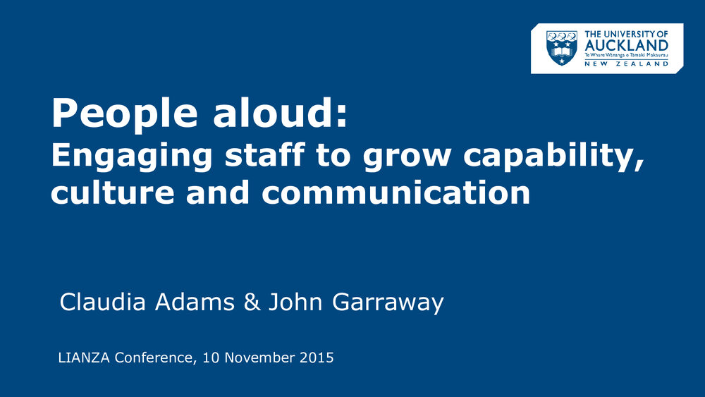 Lianza (17th Jan 2025). People aloud: Engaging staff to grow capability, culture and communication, Claudia Adams & John Garraway. In Website Lianza. Retrieved 19th Mar 2026 18:47, from https://lianza.recollect.co.nz/nodes/view/2071
