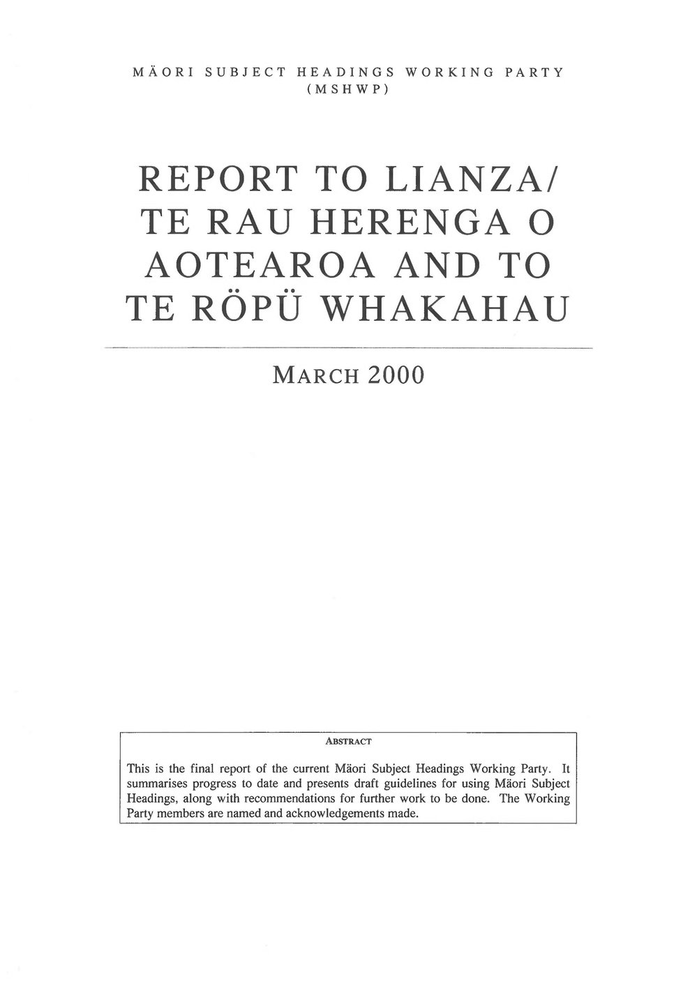 Lianza (4th Feb 2016). Maori Subject Headings Working Party (MSHWP). In Website Lianza. Retrieved 11th Apr 2026 06:20, from https://lianza.recollect.co.nz/nodes/view/2163