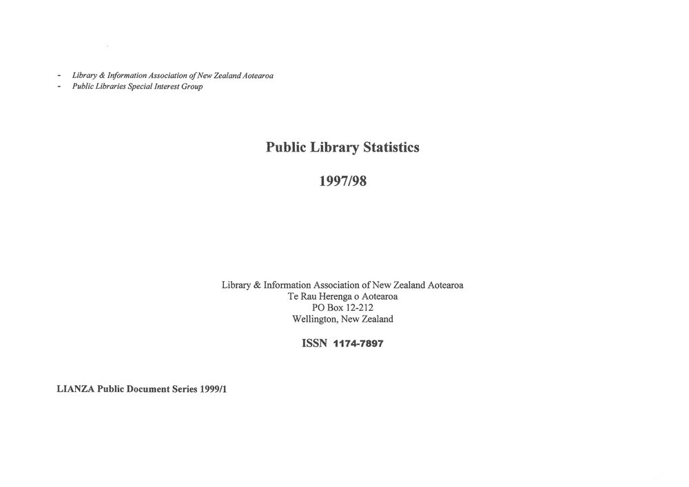 Lianza (4th Feb 2016). Public Library Statistics 1997/98. In Website Lianza. Retrieved 11th Apr 2026 06:20, from https://lianza.recollect.co.nz/nodes/view/2164