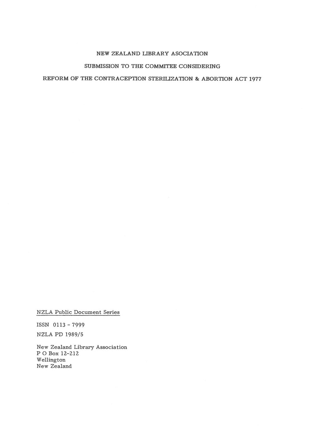 New Zealand Library Asociation Submission to the Commitee Considering Reform of the Contraception Sterilization & Abortion Act 1977