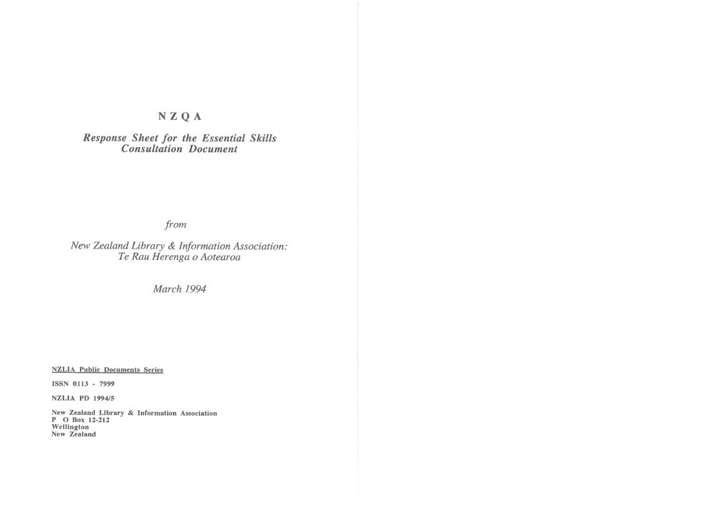 NZQA Response Sheet for the Essential Skills Consultation Document