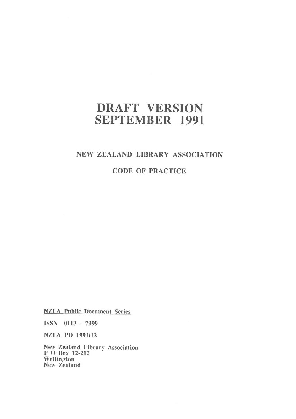 Draft version September 1991 New Zealand Library Association Code of Practice
