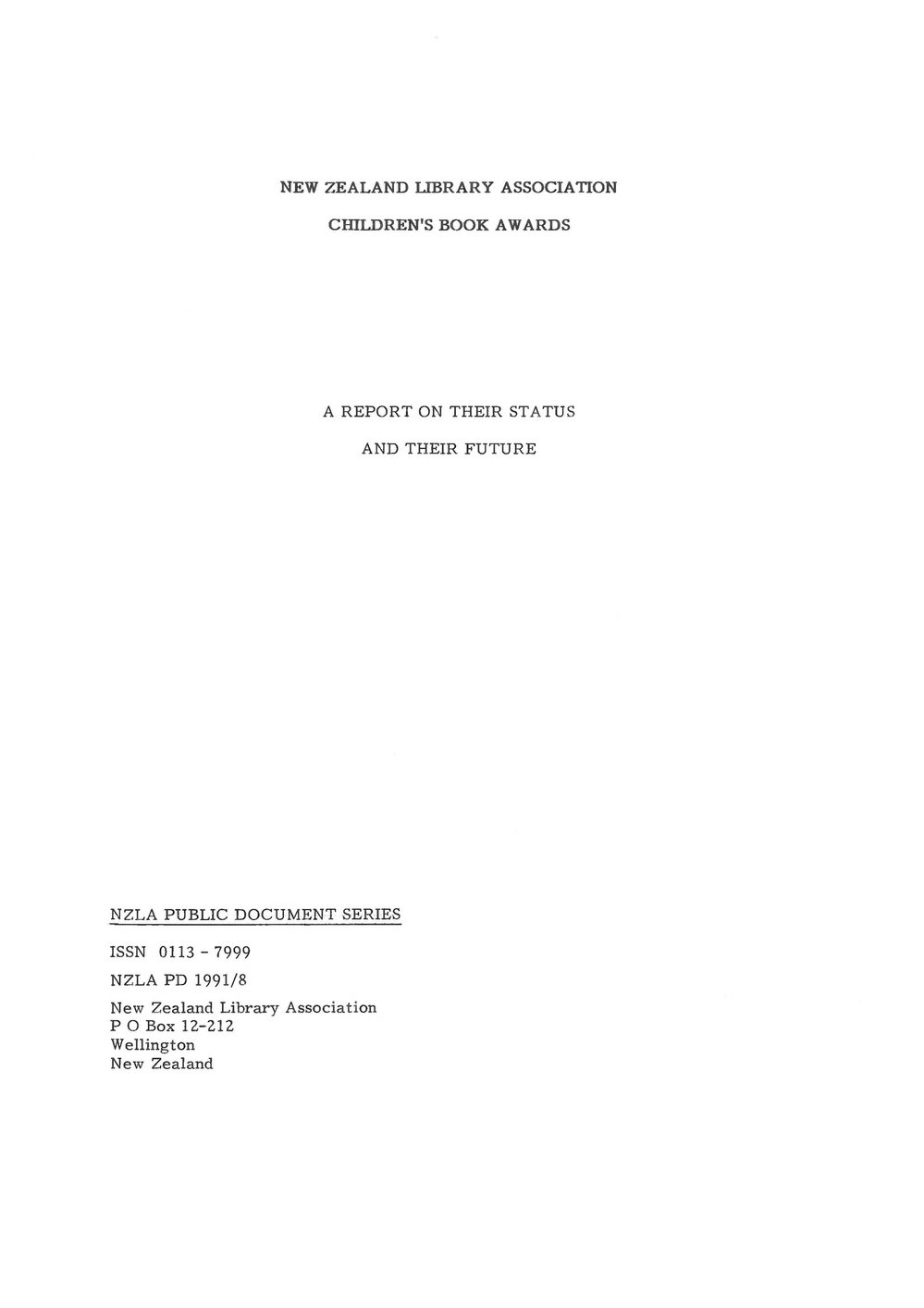 New Zealand Library Association Children s Book Awards A Report Their Status and Their Future
