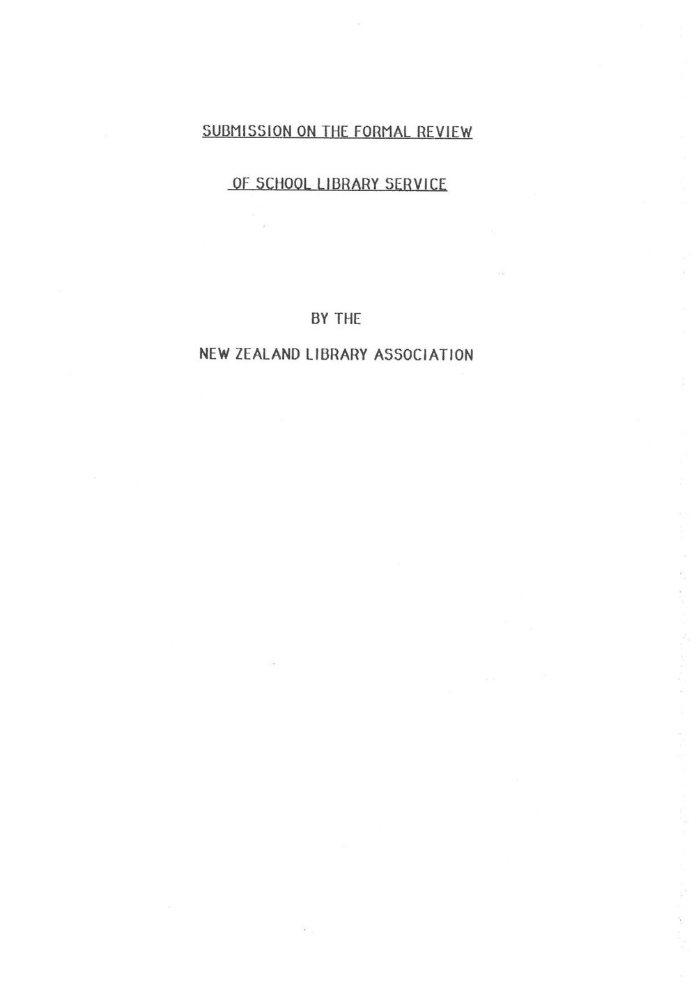 Submission on the Formal Review of School Library Service By the New Zealand Library Associatinon
