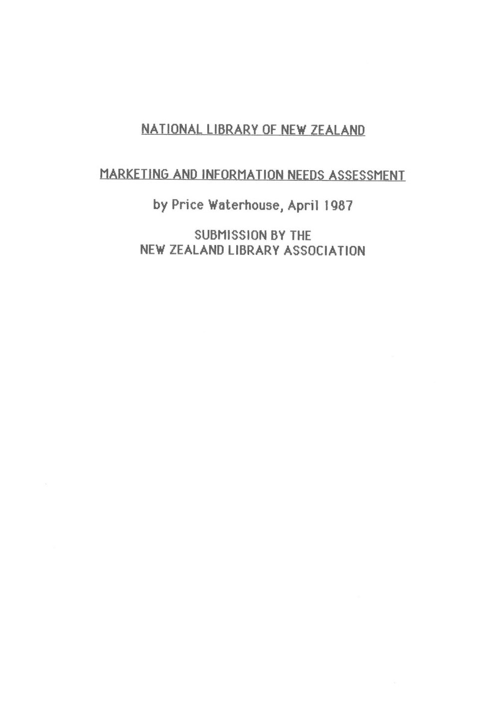 National Library of New Zealand Marketing and Information Needs Assessment