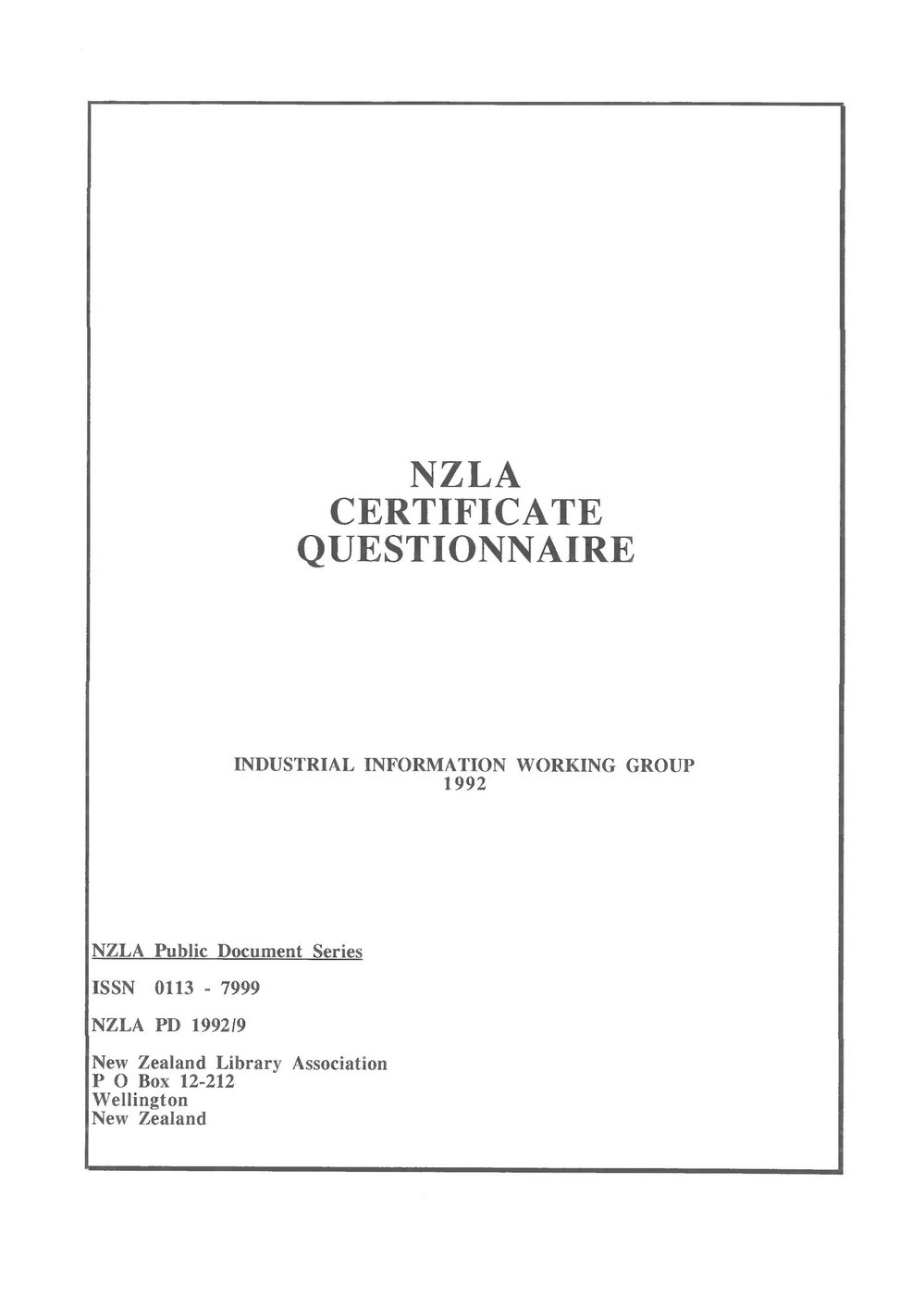 NZLA Certificate Questionnaire Industrial Information Working Group 1992