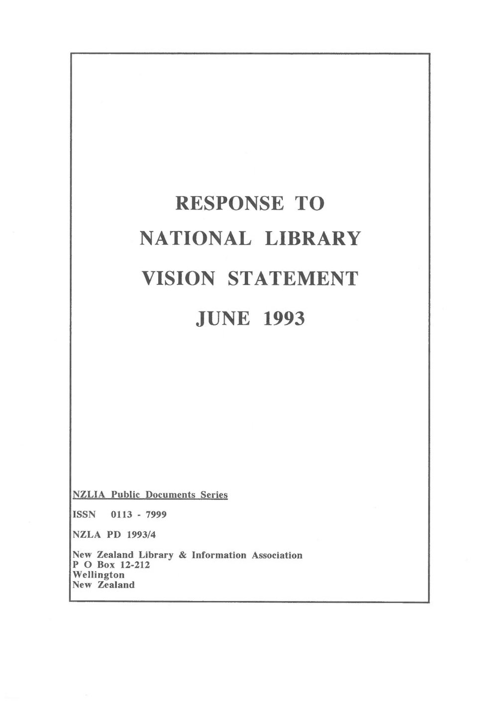 Lianza (18th Feb 2016). Response to National Library Vision Statement June 1993. In Website Lianza. Retrieved 11th Apr 2026 04:32, from https://lianza.recollect.co.nz/nodes/view/2260