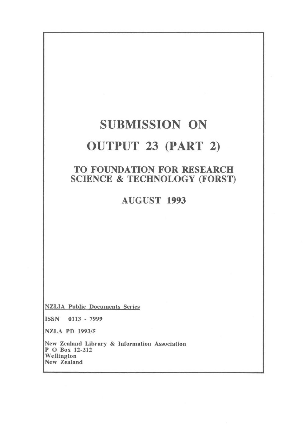 Submission on Output 23 (Part 2) To Foundation for Research Science & Technology (Forst)