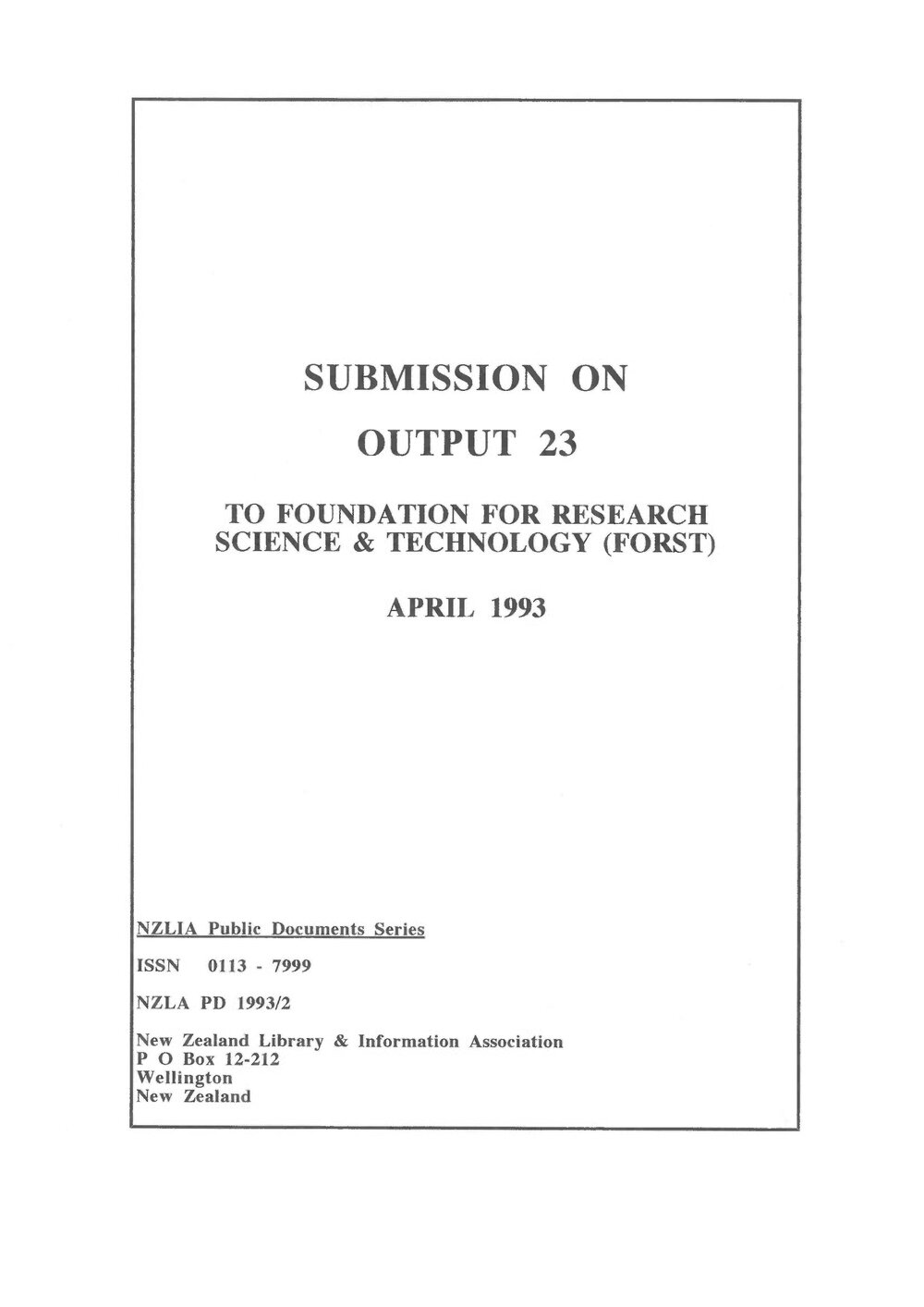 Submission on Output 23 (Part 2) To Foundation for Research Science & Technology (Forst)