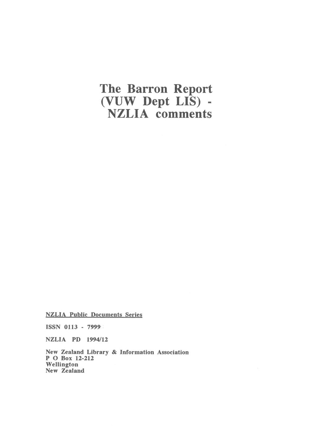 Lianza (30th Aug 2024). The Barron Report (VUW Dept LIS) - NZLIA comments. In Website Lianza. Retrieved 29th Mar 2026 11:50, from https://lianza.recollect.co.nz/nodes/view/2267