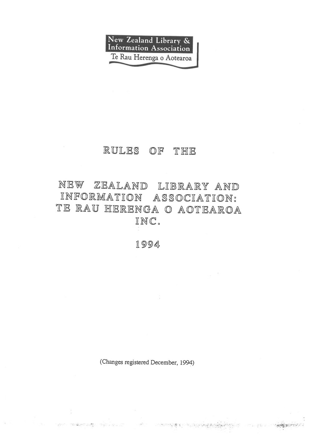 Rules of the New Zealand Library Association Te Rau Herenga o Aotearoa INC. 1994