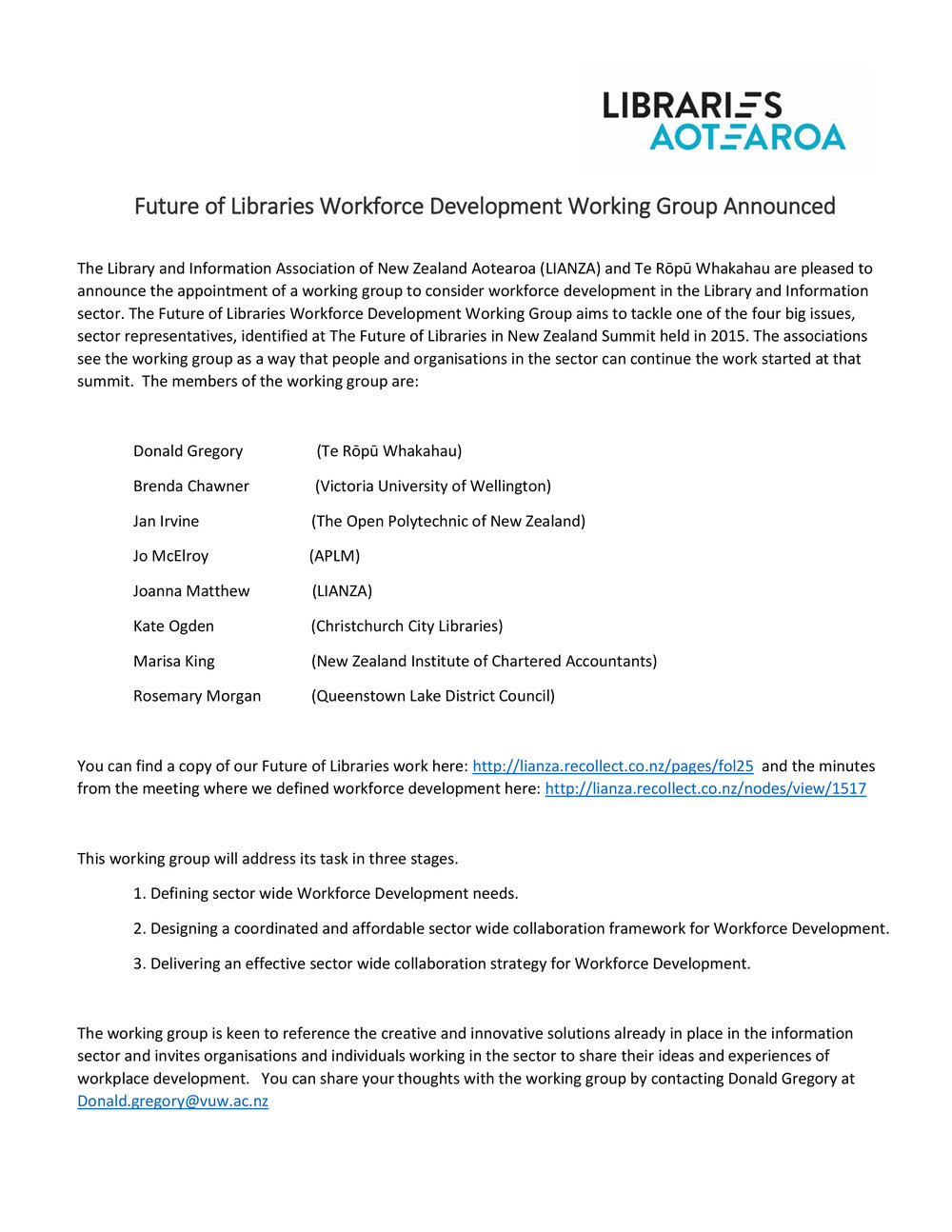 Lianza (20th Sep 2024). Workforce Developing Working Group Announcement. In Website Lianza. Retrieved 19th Mar 2026 17:24, from https://lianza.recollect.co.nz/nodes/view/2307