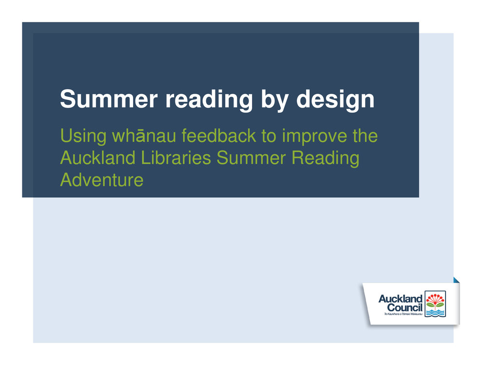 Lianza (23rd May 2017). Summer reading by design Using whānau feedback to improve the Auckland Libraries Summer Reading Adventure. In Website Lianza. Retrieved 20th Mar 2026 00:24, from https://lianza.recollect.co.nz/nodes/view/2590