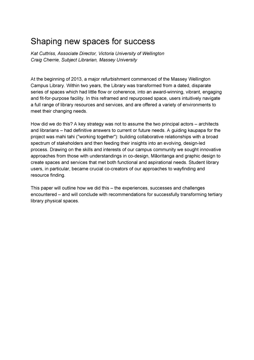 Lianza (23rd May 2017). Shaping new spaces for success. In Website Lianza. Retrieved 19th Mar 2026 22:46, from https://lianza.recollect.co.nz/nodes/view/2613
