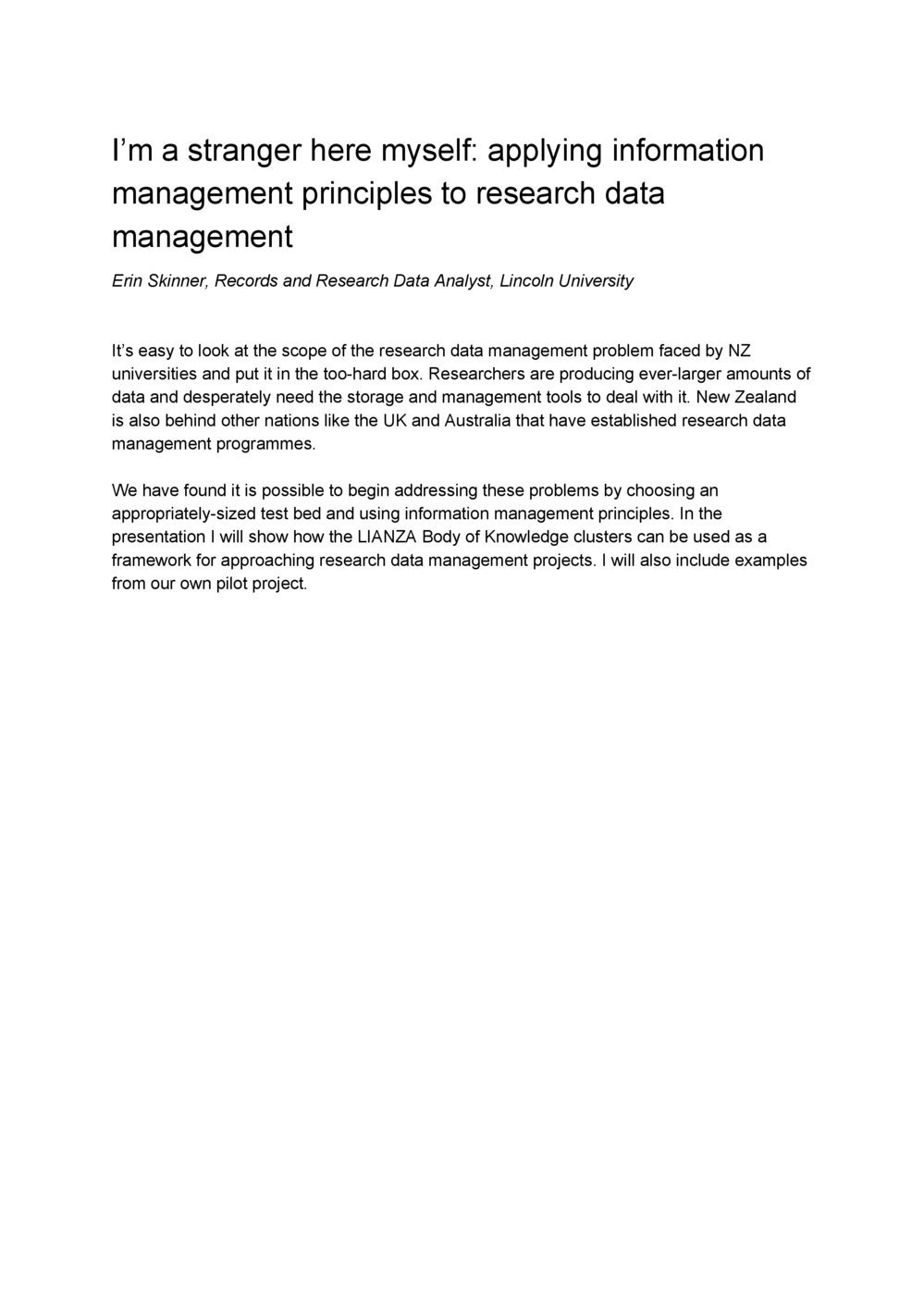 Lianza (23rd May 2017). I’m a stranger here myself: applying information management principles to research data management. In Website Lianza. Retrieved 20th Mar 2026 00:25, from https://lianza.recollect.co.nz/nodes/view/2617