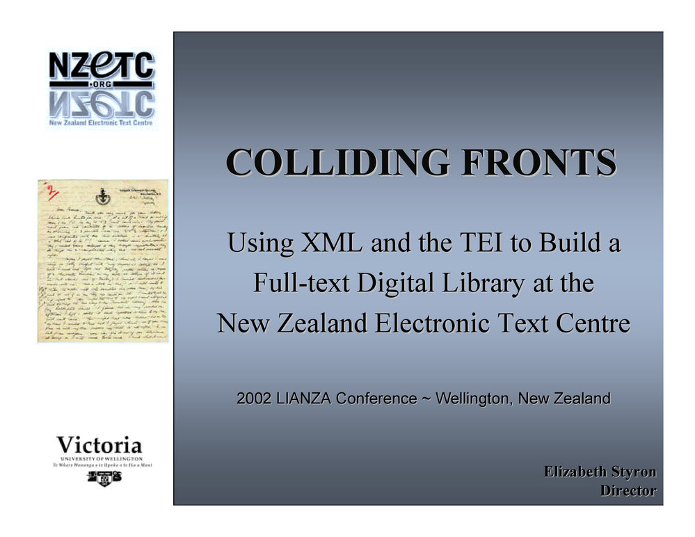 Lianza (23rd May 2017). COLLIDING FRONTS: Using XML and the TEI to Build a Full-text Digital Library at the New Zealand Electronic Text Centre. In Website Lianza. Retrieved 19th Mar 2026 18:56, from https://lianza.recollect.co.nz/nodes/view/2809
