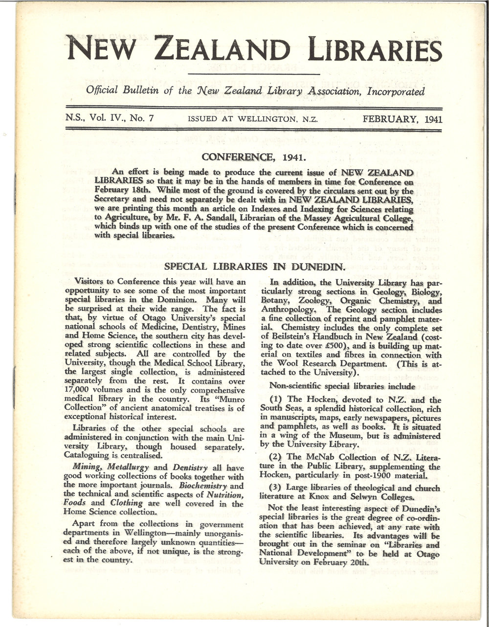 Previous: New Zealand Libraries Vol. IV, No. 7