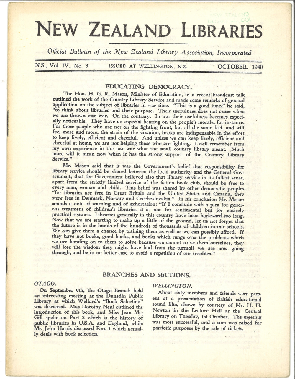 Previous: New Zealand Libraries Vol. IV, No. 3
