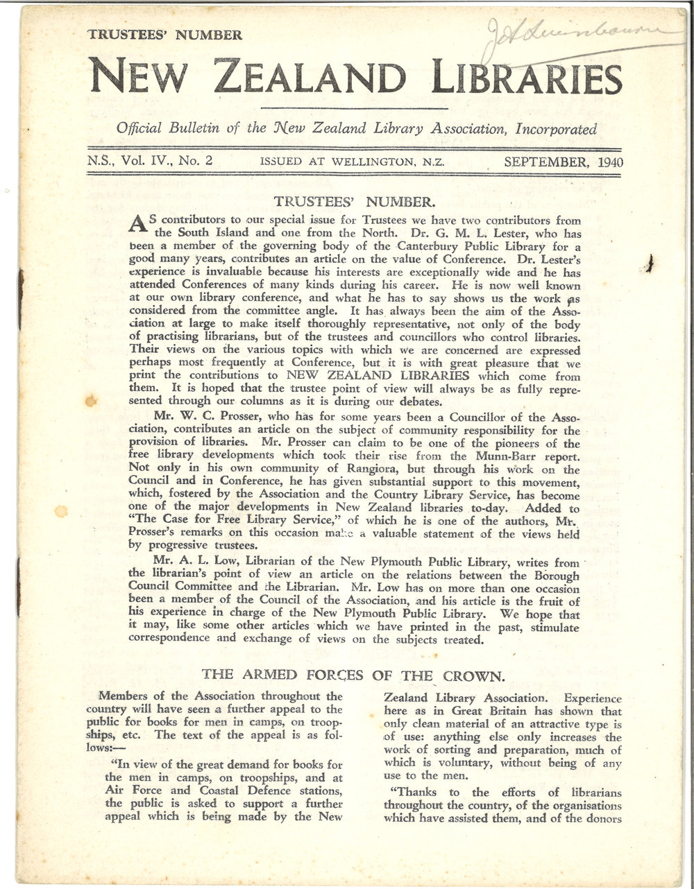 Previous: New Zealand Libraries Vol. IV, No. 2