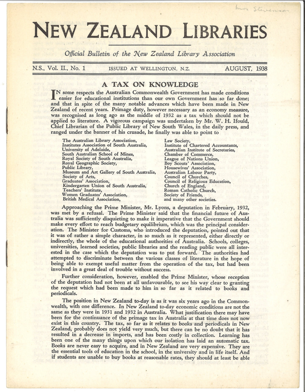 New Zealand Libraries Vol. II, No. 1 (alternative copy)