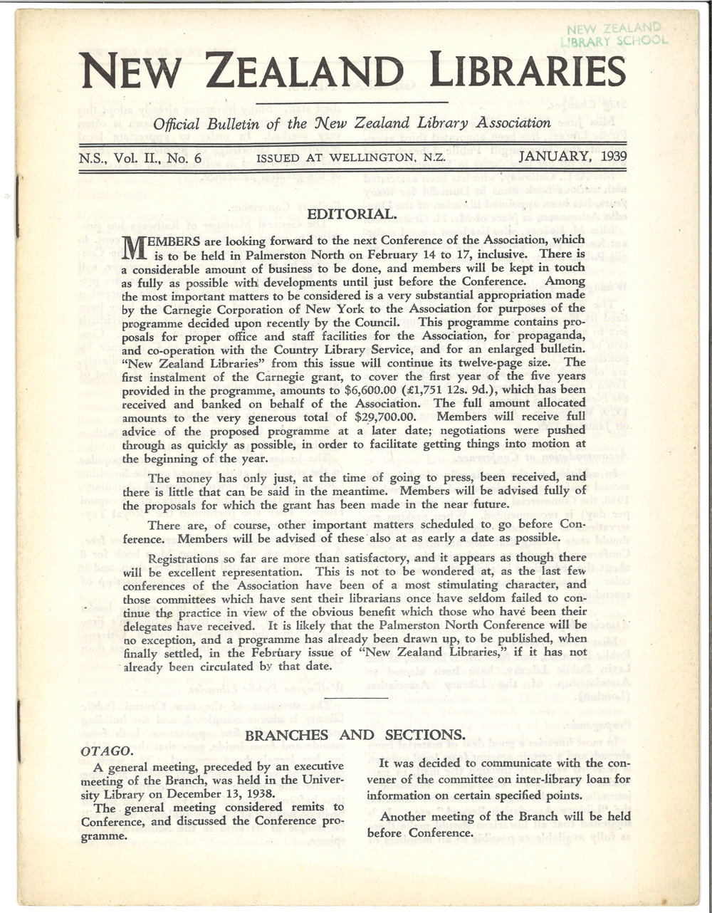 New Zealand Libraries Vol. II, No. 6 (alternative copy)