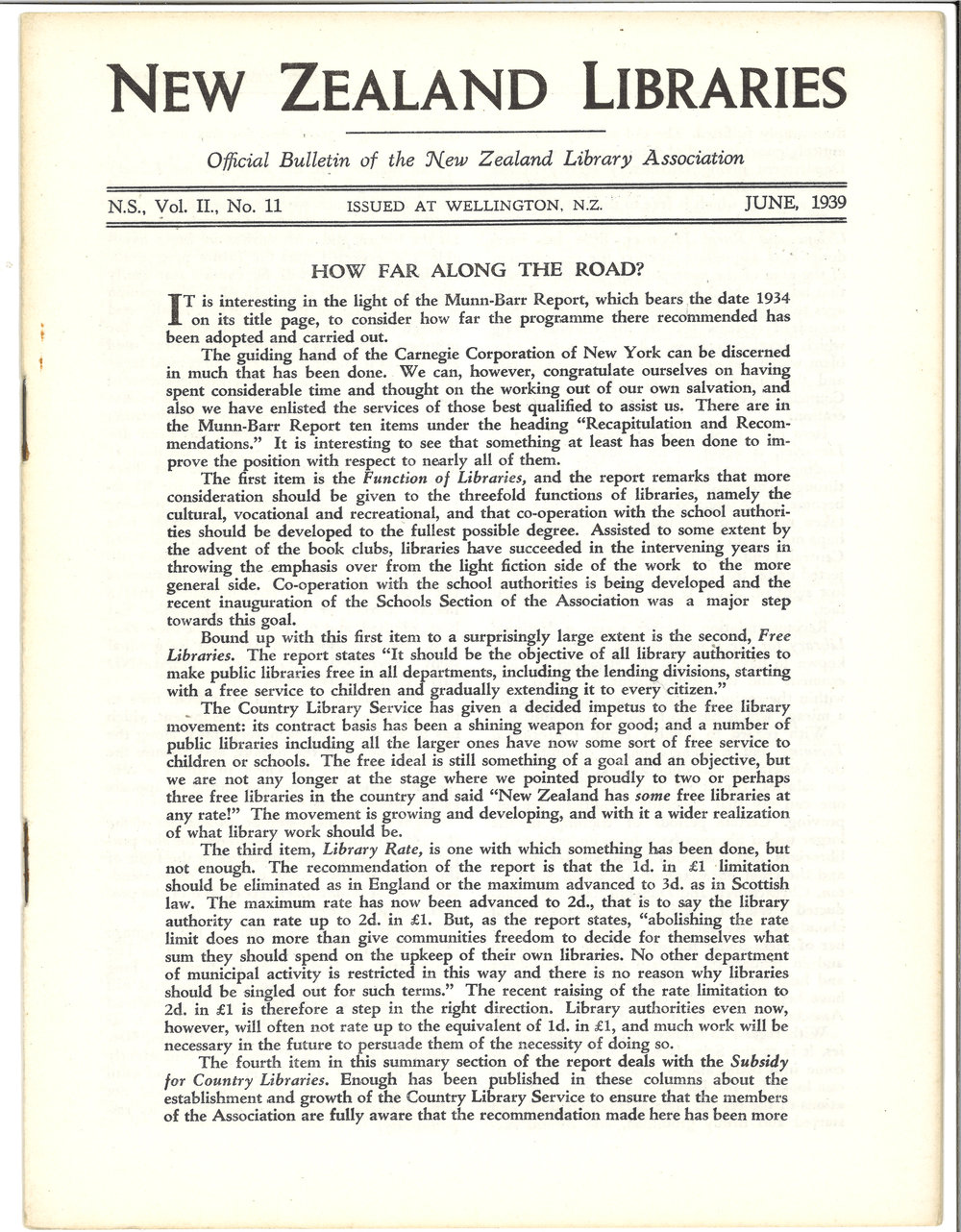 New Zealand Libraries Vol. II, No. 11 (alternative copy)