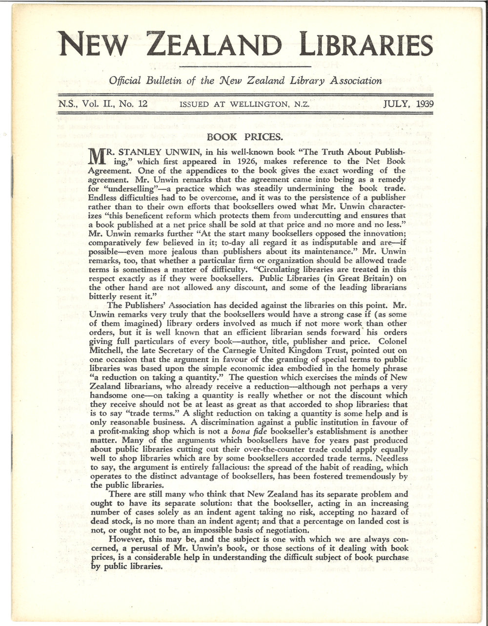 New Zealand Libraries Vol. II, No. 12 (alternative copy)