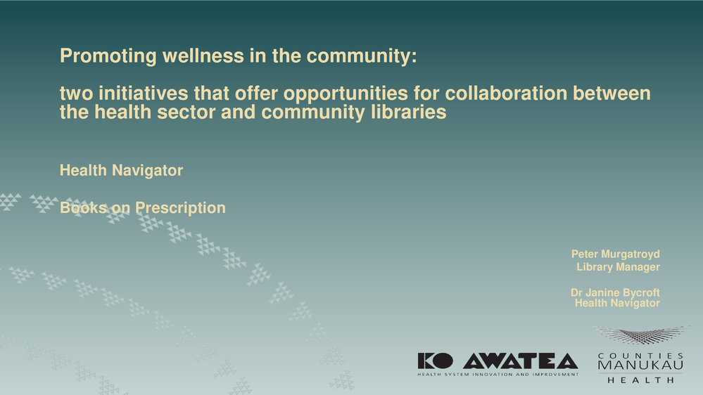 Lianza (1st Dec 2017). Promoting wellness in the community: two initiatives that offer opportunities for collaboration between the health sector and community libraries . In Website Lianza. Retrieved 10th Apr 2026 04:22, from https://lianza.recollect.co.nz/nodes/view/4059