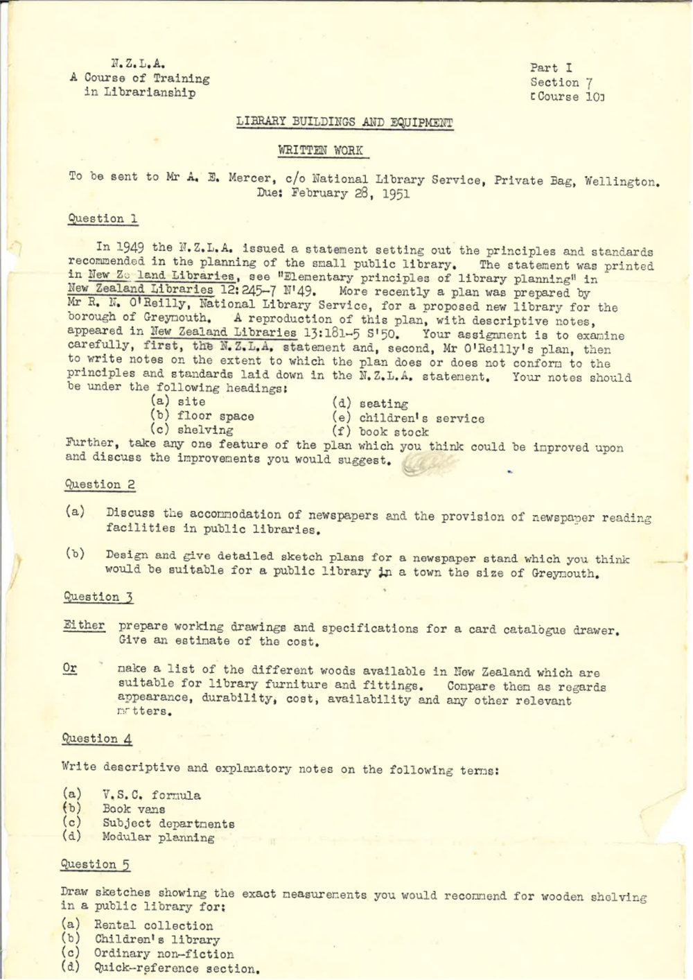 Cancel EditLianza (16th Aug 2024). N.Z.L.A. - A Course of Training in Librarianship - Exam - approx 1950's. In Website Lianza. Retrieved 9th Apr 2026 15:56, from https://lianza.recollect.co.nz/nodes/view/4748