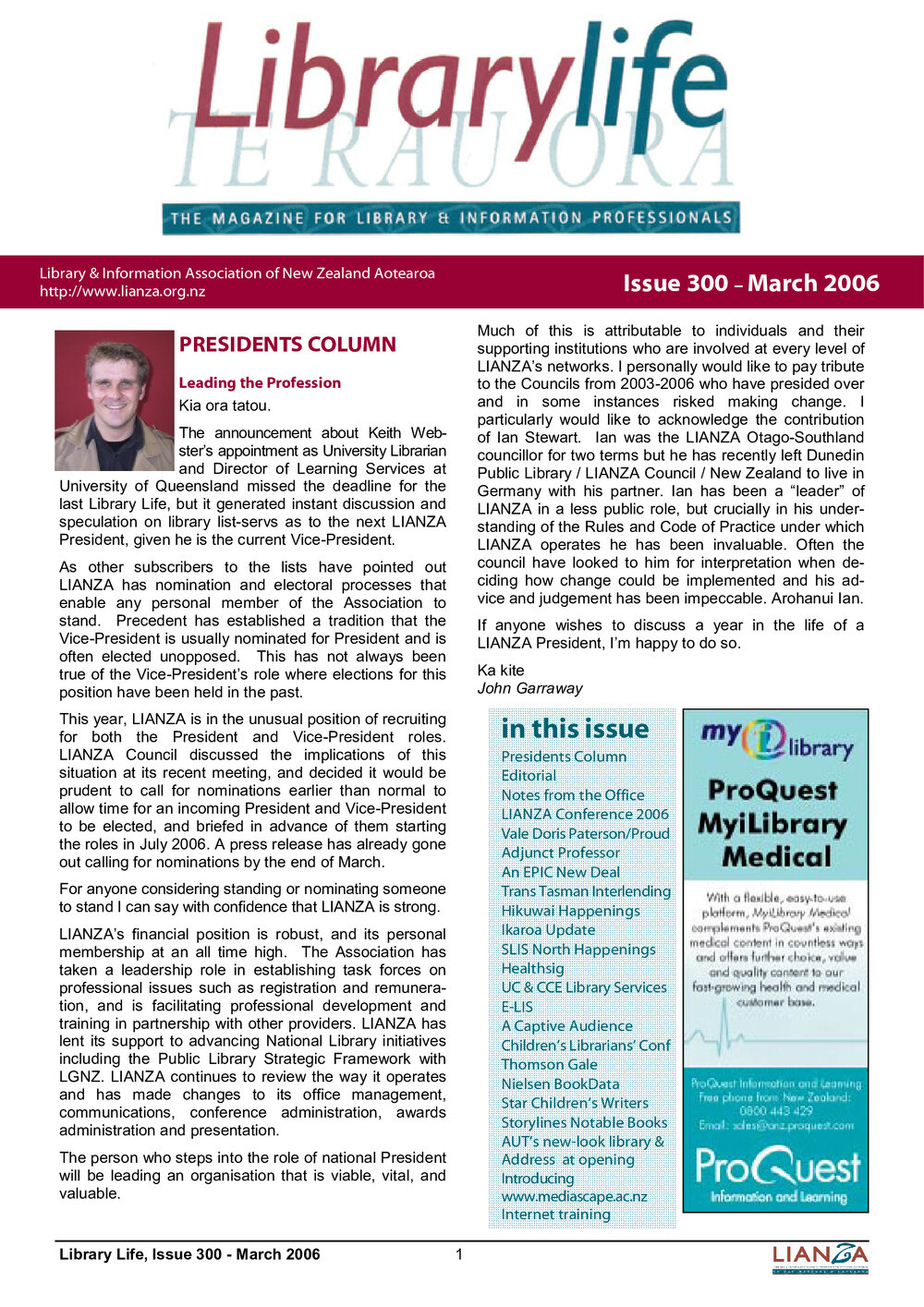 Lianza (16th Sep 2024). Library Life Issue 300 March 2006. In Website Lianza. Retrieved 7th Apr 2026 17:34, from https://lianza.recollect.co.nz/nodes/view/6401
