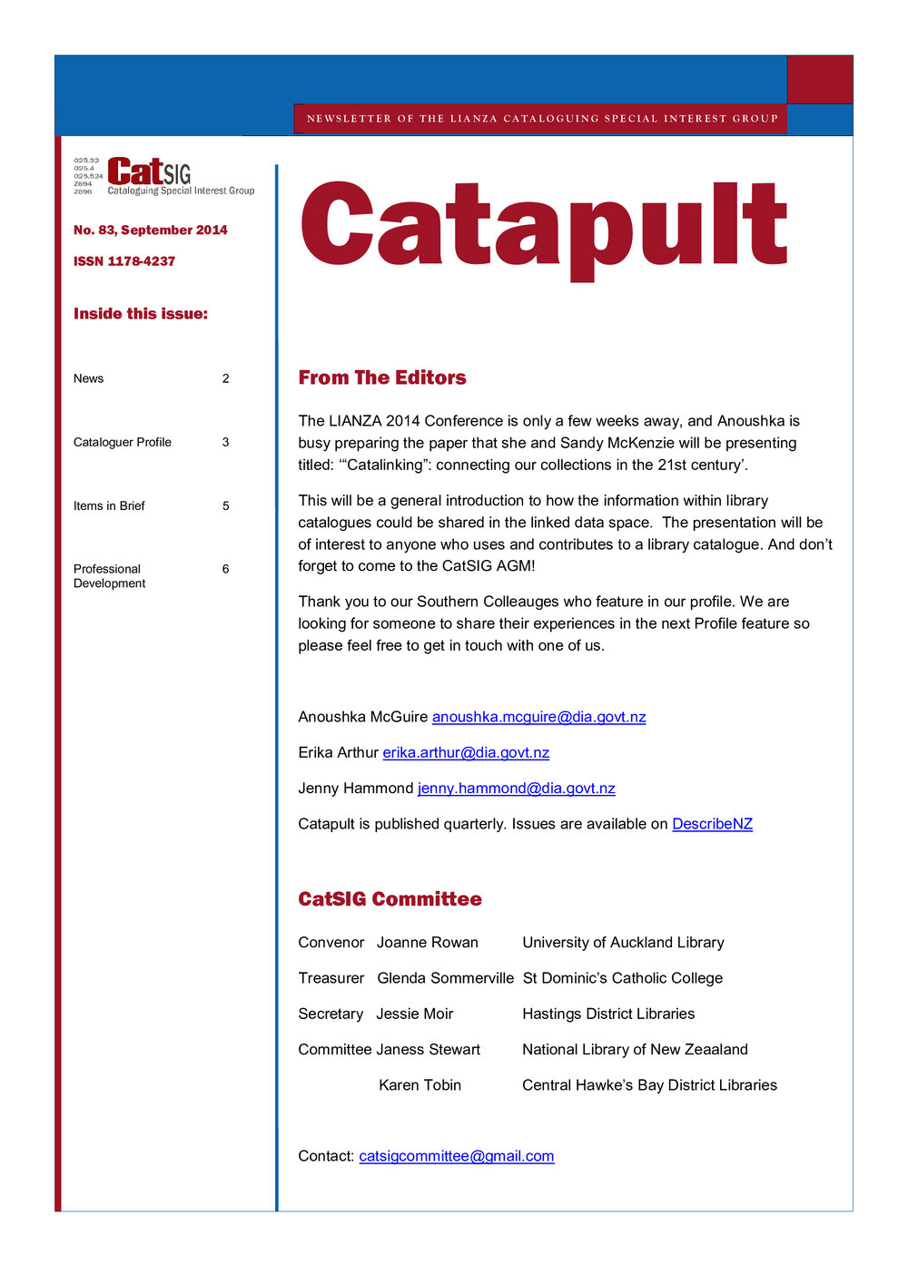 Lianza (29th Aug 2024). Catapult Issue 83 - September 2014. In Website Lianza. Retrieved 6th Apr 2026 08:18, from https://lianza.recollect.co.nz/nodes/view/6419