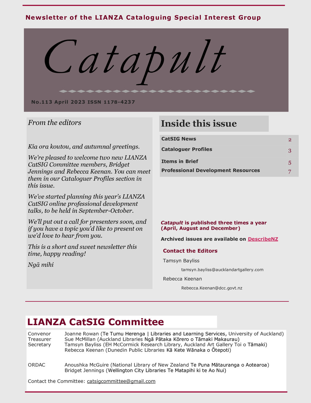 Lianza (29th Aug 2024). Catapult Issue 113 - April 2023. In Website Lianza. Retrieved 6th Apr 2026 08:21, from https://lianza.recollect.co.nz/nodes/view/6448