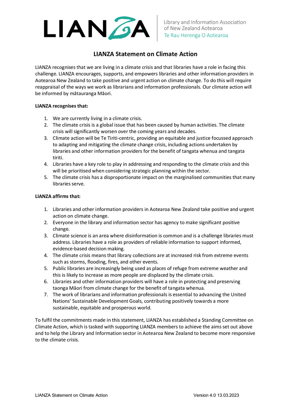 Lianza (18th Dec 2024). LIANZA Statement on Climate Action. In Website Lianza. Retrieved 6th Apr 2026 06:59, from https://lianza.recollect.co.nz/nodes/view/6848