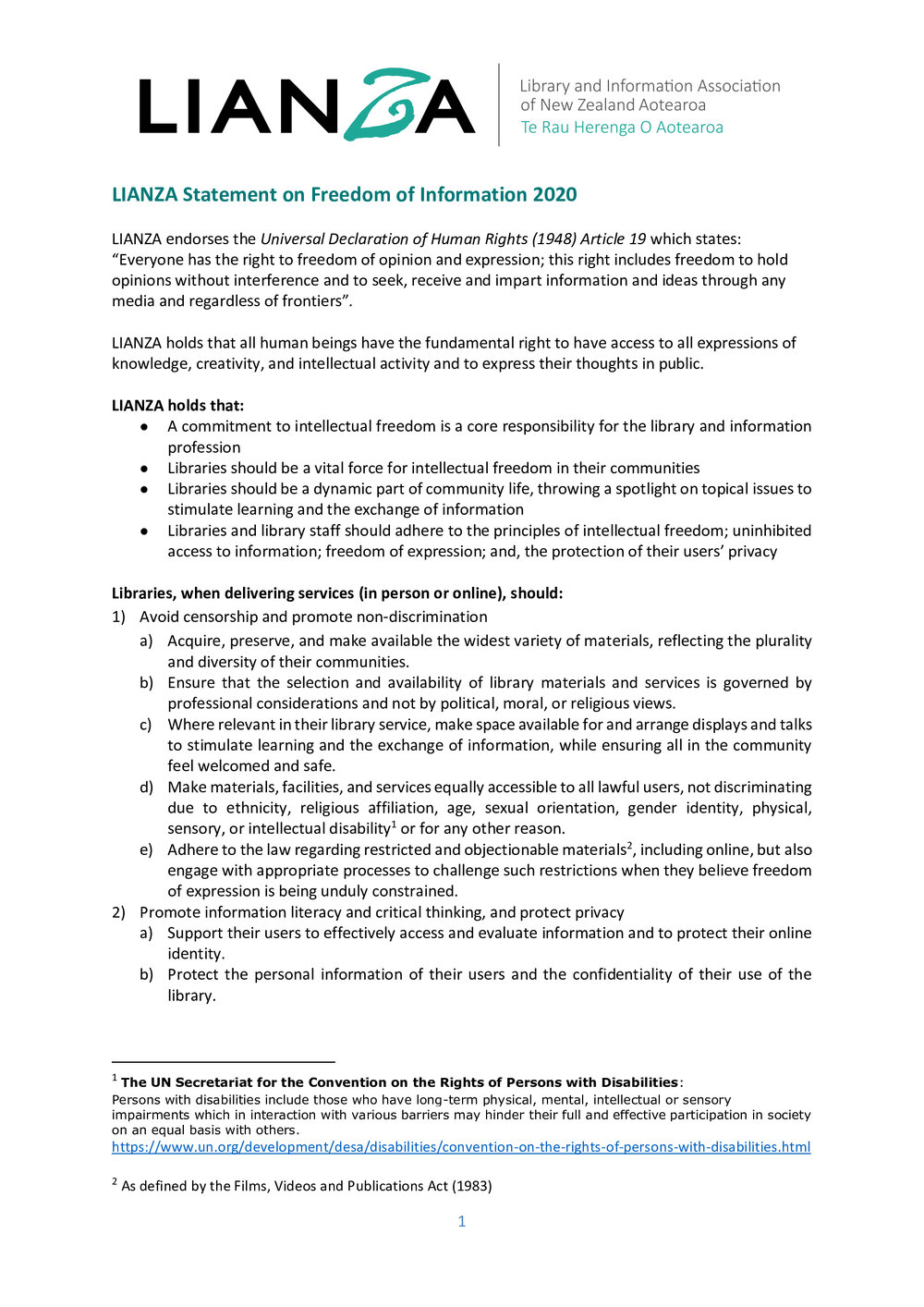 Lianza (18th Dec 2024). LIANZA Statement on Freedom of Information. In Website Lianza. Retrieved 6th Apr 2026 06:59, from https://lianza.recollect.co.nz/nodes/view/6850