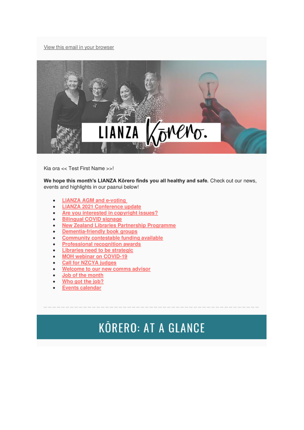 TypeLIANZA PublicationTitle of documentKorero October 2021 Newsletter Pānui Description Kōrero newsletterType of DocumentPublic Document SeriesAuthorLIANZADate October 2021