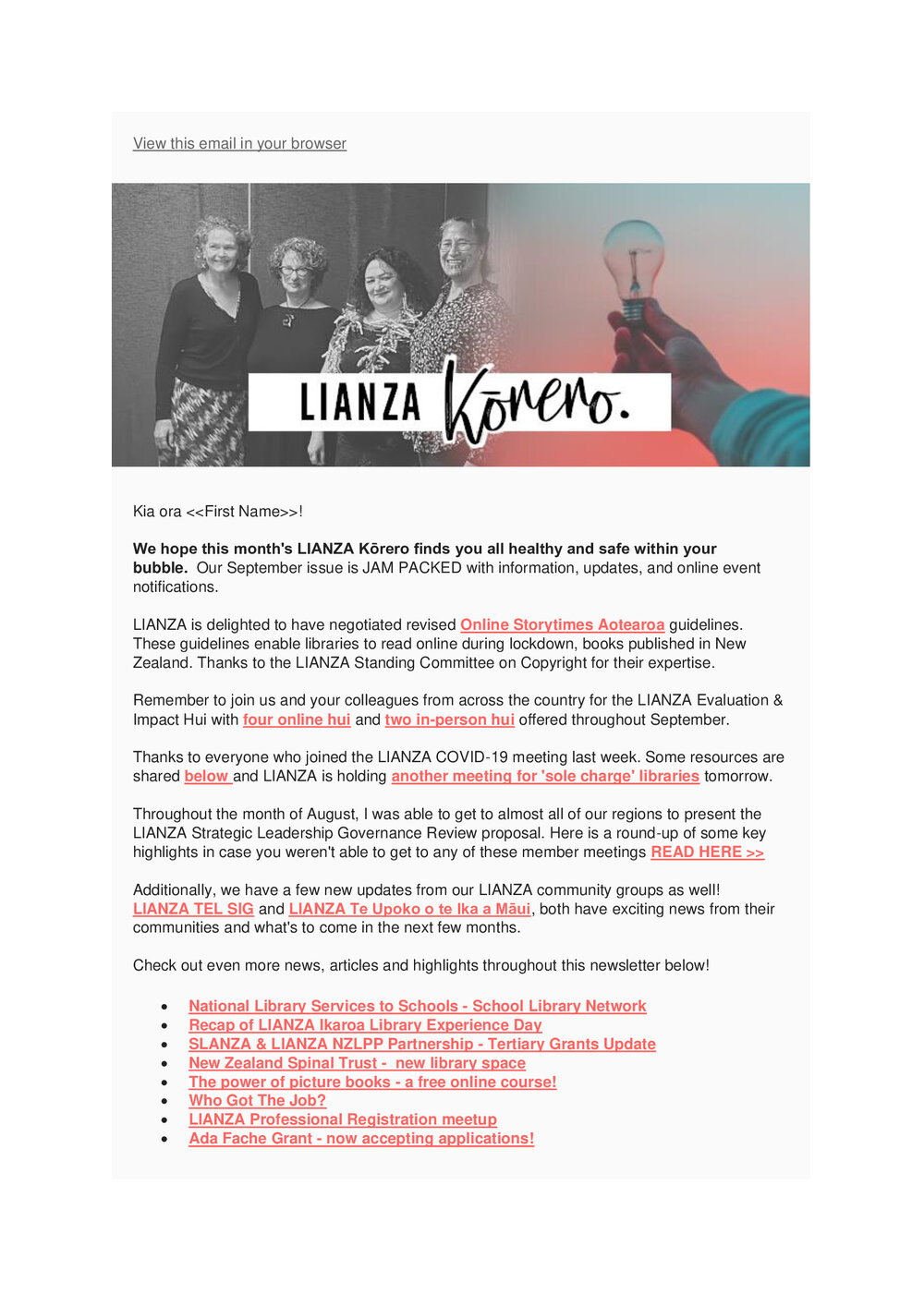 TypeLIANZA PublicationTitle of documentKorero September 2021 Newsletter Pānui Description Kōrero newsletterType of DocumentPublic Document SeriesAuthorLIANZADate September 2021