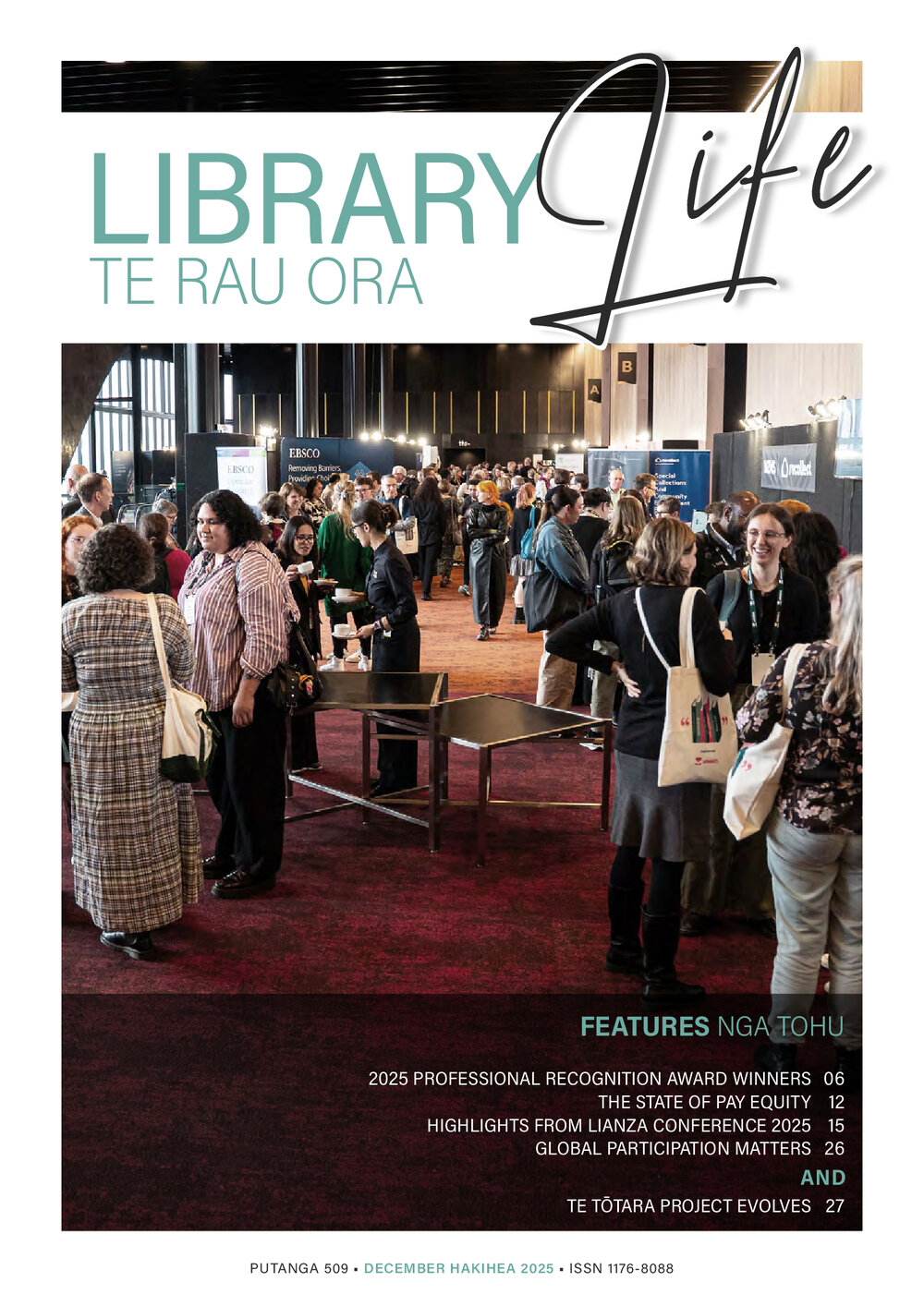 Lianza (9th Apr 2026). Library Life Te Rau Ora Issue 509 December 2025. In Website Lianza. Retrieved 9th Apr 2026 14:00, from https://lianza.recollect.co.nz/nodes/view/7149