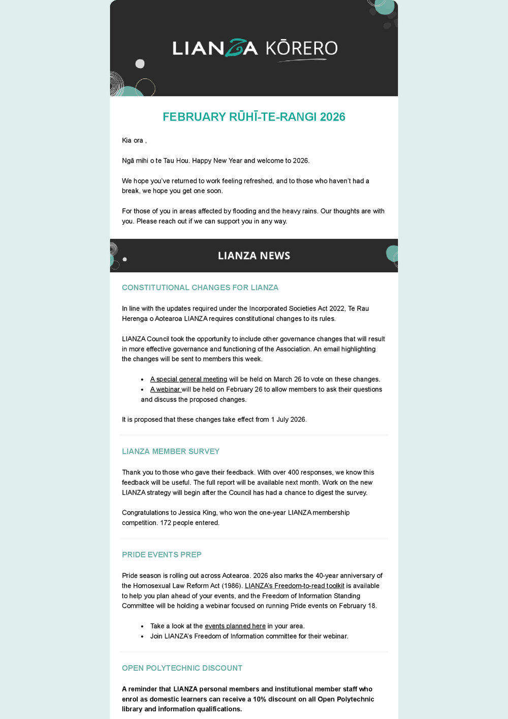 Lianza (9th Apr 2026). LIANZA Kōrero February 2026 . In Website Lianza. Retrieved 9th Apr 2026 14:00, from https://lianza.recollect.co.nz/nodes/view/7161