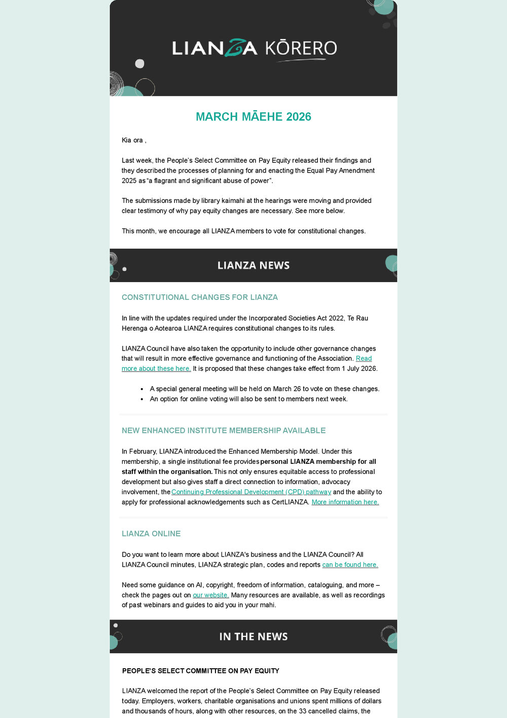 Lianza (9th Apr 2026). LIANZA Kōrero March 2026. In Website Lianza. Retrieved 9th Apr 2026 14:00, from https://lianza.recollect.co.nz/nodes/view/7162